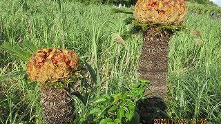 土手の途中にあった、曲がったソテツの茎に引っかかったりもした。