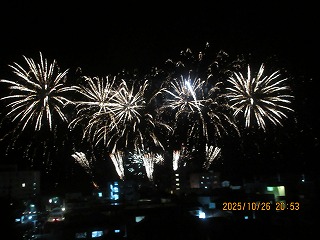 夜には花火大会もあって、少しの間屋上に上がって花火を見た。