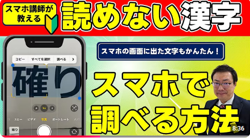 【読めない漢字】スマホで簡単に調べる方法 スマホに表示された文字 雑誌、新聞の文字 アプリを入れずに標準の機能でできます.
