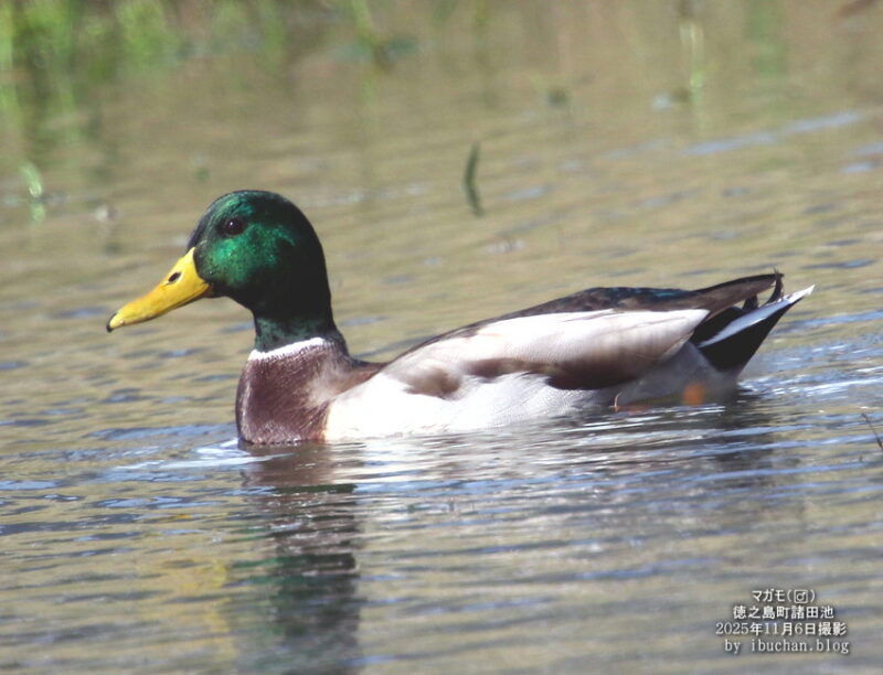 マガモ(雄)渡来 2025年11月7日 最終更新日時 : 2025年11月7日 ibuchanじじ FacebookXBlueskyHatenaCopy7年11月7日(金)天気 曇 室温26.3℃ 湿度60% (午前6時55分計測) 今日も気象庁からは波浪注意報が出され海は荒れた天気となっている。 昨日は諸田池にマガモの雄が渡来していた。 マガモは冬鳥で、この池にも例年数羽が渡来する。 20251106magamo-iPhone (2025年11月6日 徳之島町諸田池で撮影) マガモ(雄) (2025年11月6日 徳之島町諸田池で撮影) 投稿者プロフィール ibuchanじじ 最新の投稿 鳥類2025年11月7日マガモ(雄)渡来 鳥類2025年11月6日未だ居た亜種オオヒシクイ 鳥類2025年11月5日カルガモの採餌 鳥類2025年11月4日ハシビロガモの採餌 Post Views: 62 FacebookXBlueskyHatenaCopy