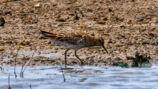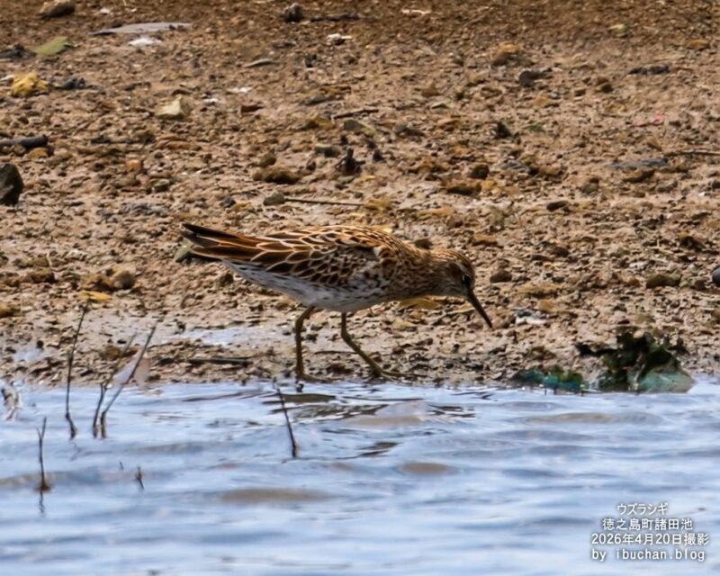 春の渡りのシーズン、諸田池で一際目を引くウズラシギに出会いました。