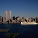 満月の明るい光がハドソン河とWTCを照らし夜のニューヨークならではの美しい光景でした。