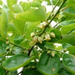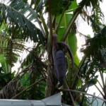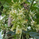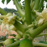 普通、パパイヤは雌雄異株だが、このパパイヤは雄花の下に雌株の実も付けている。