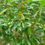 アセローラの果実はビタミンCを豊富に含む事で、一躍脚光を浴び、島でも庭木として植えられるようになった。(2009年10月8日、17:40 徳之島町亀津北区民家で撮影)