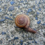 トクノシマヤマタカマイマイに比べて二回りぐらい直径が大きく、全体的に山が薄く平べったい感じに見えます。(2009年10月23日、11:39 自宅で撮影)