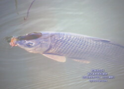 昨日ほぼ全身を撮ることが出来たので、あごひげのような突起物が二本しっかりと写っているのでこれはフナではなくコイでしょう。