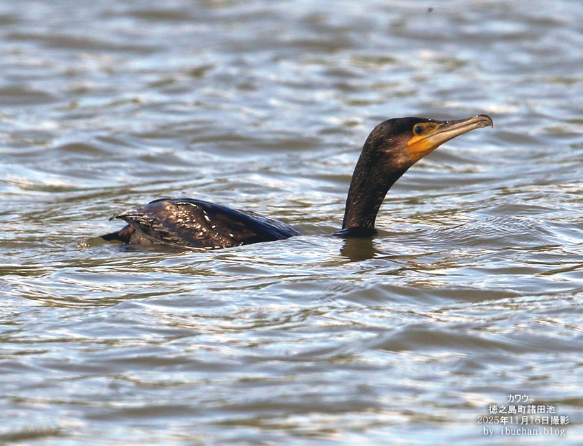 昨日は諸田池にカワウが一羽渡来していた。 今季、初のアップになる。 残念ながら動画は撮り損ねた。 (2025年11月14日 徳之島町諸田池で撮影)