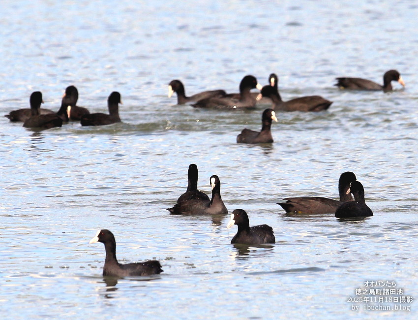 オオバンは島では冬鳥として今頃渡来し、翌年の春は北へ帰る。 (2025年11月18日 徳之島町諸田池で撮影)