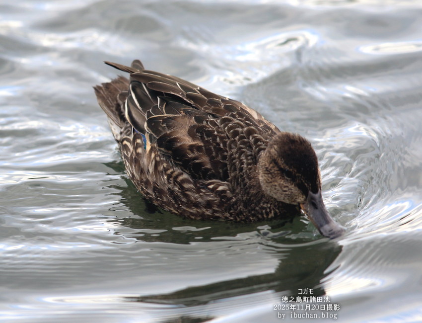 コガモは冬鳥で例年この時期に島の水辺に渡来する。 (2025年11月20日 徳之島町諸田池で撮影)