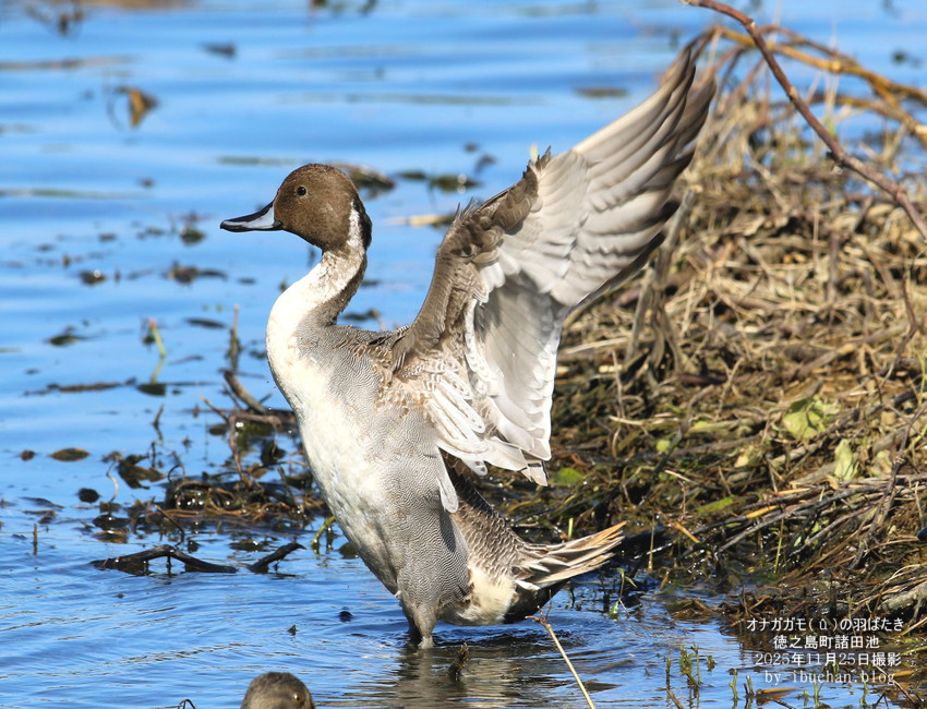 オナガガモ(雄)の羽ばたき