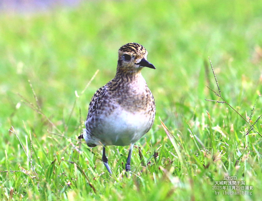 ムナグロは島では旅鳥または冬鳥で年間を通して、海岸や農耕地や芝地で見ることが出来る。 (2025年11月29日 天城町総合運動公園で撮影)